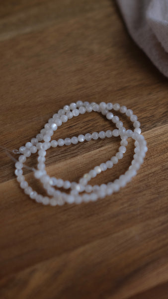 These genuine Mother of Pearl beads offer a crisp, ivory tone and a consistent round shape. Their petite 3mm size and smooth surface make them the perfect high-end alternative to glass seed beads for dainty spacers and detailed layering.