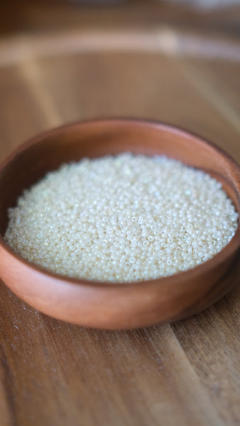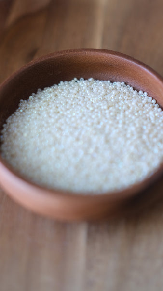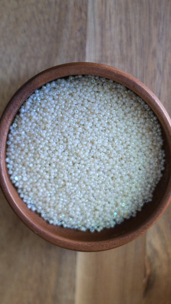 These are size 11/0 Ceylon Pearl White Charlotte beads. Each of these Charlotte beads features two cut facets on each bead which provides a beautiful sparkle.