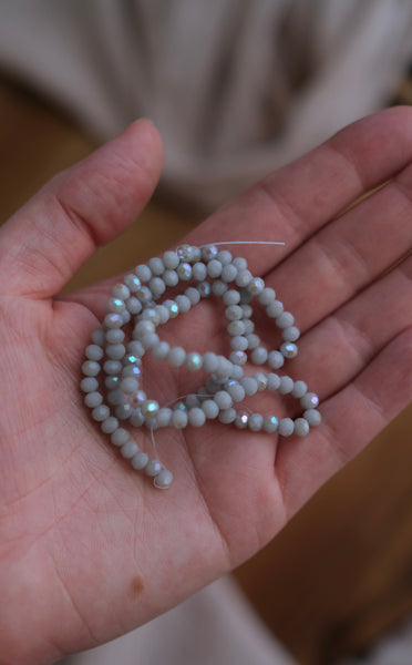These faceted rondelles feature a light grey base with a "Half Rainbow" plated finish. The electroplated coating adds a sparkly flash.