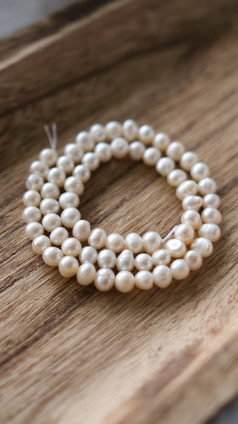 This strand of freshwater pearls are 5-6mm. There are approximately 62 pearls per strand.