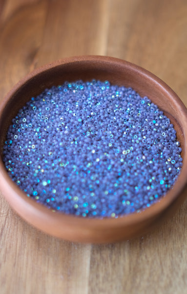 These are size 11/0 Opal Neon Purple Aurora Boreale Charlotte beads. Each of these Charlotte beads features two cut facets on each bead which provides a beautiful sparkle.