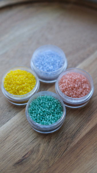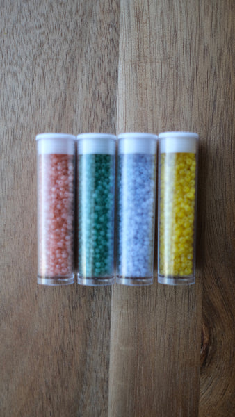 This bead pack comes with four different pastel charlotte bead colors. The pack contains four tubes, one of each color containing 7g each. There are 28g in total in this bead pack.